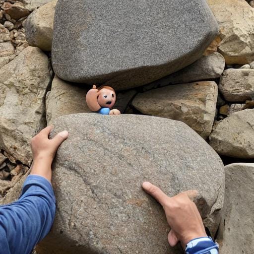 Yes! Of course I do! Because I do data work for a living I am familiar with the way the models and algorithms work internally when they create things like AI generated content. They are really easy to fool and make fun of, because AI cannot and does not understand human concepts like metaphor, sarcasm, or even contextual references. It cannot because it is just a computer that connects dots, and we are not at a point where AI can say “oh, this dot is not literal, I need to treat it differently than other dots” because all AI Large Language Models are doing is scraping up stuff from the internet. I dunno if you are aware of this or not (sarcasm, that AI wouldn’t get) but there is some wild religious stuff out on the internet from some wild Christian theories. So, it’s super easy to have AI generate something like this week’s picture simply because it cannot understand the Peter/Rock connection in Greek, or the metaphorical “like a rock” character quality of some humans. Maybe I’m just too immature, but these things amuse me! This week I leaned hard into a silly AI picture just to prove the point.